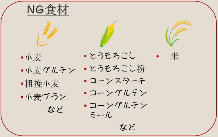 避けるべき(注意すべき)穀類とは、「小麦」「とうもろこし」「米」です。